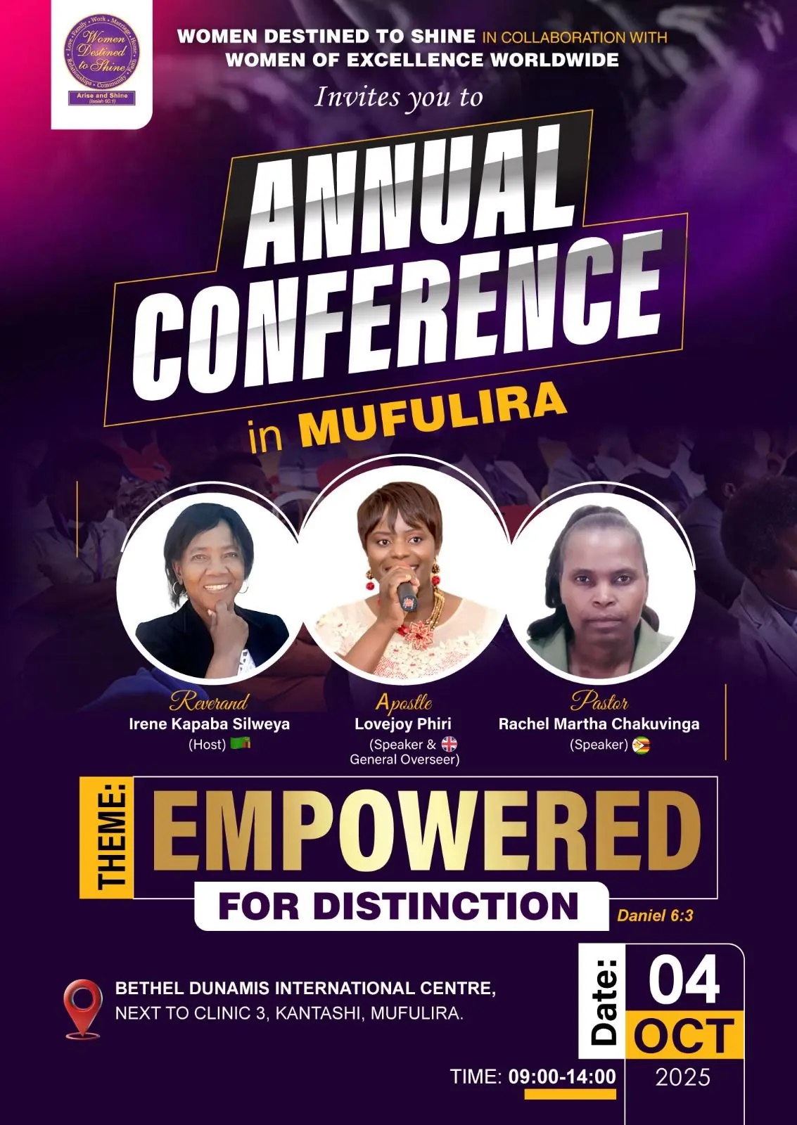 Venue: Bethel Dunamis International Centre, next to Clinic 3, Kantashi, Mufulira, Zambia